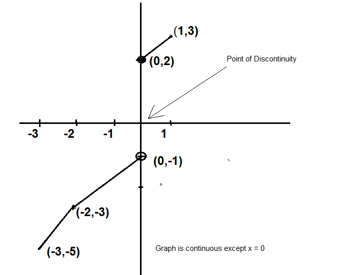 `f(x)` is discontinuous at `x = 0` only