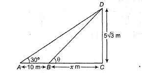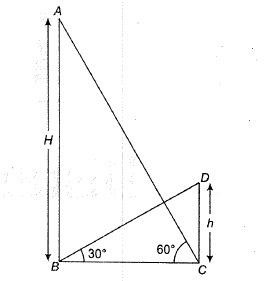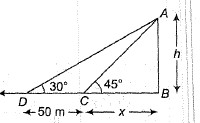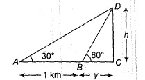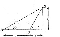 In `Delta BDA, tan 30^0 = h/x => x = sqrt(3) h` .......(i)