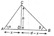 `:. d=h[(cot alpha cot beta-1)/(cot (alpha+beta))]` [from Eq. (iii)]