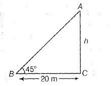 In `Delta ABC, tan45^0 = h/(20) => h =20m`