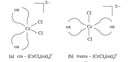 (a) cis-`[CrCl_2(o x)_2]^(3–)` (b) trans-`[CrCl_2(o x)_2]^(3–)`
