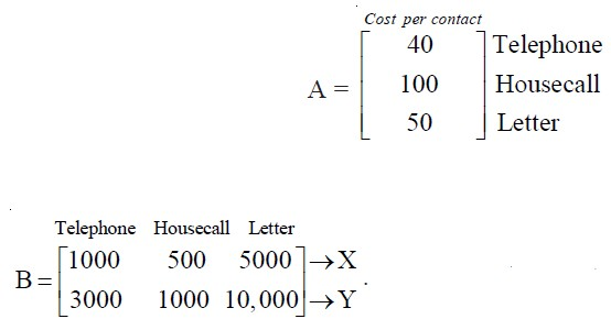 The number of contacts of each type made in two cities X and Y is given by Class 12 Chapter 3 Example 19