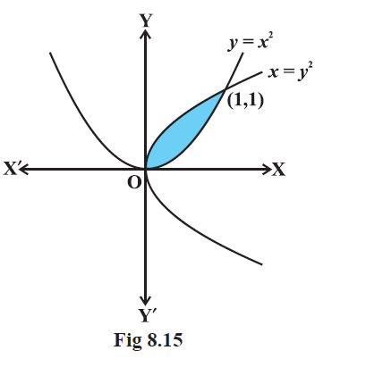 ● Here the points of intersection of these two curves are given by `x = a` and `x = b` obtained by taking common values of `y` from the given equation of two curves.