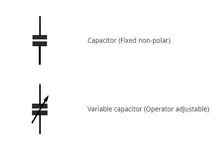 `color{blue} ✍️` A capacitor with fixed capacitance is symbolically shown as