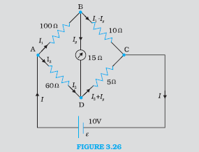 `color{blue} ✍️` The jockey is moved along the wire till at a point `N_1,` at a distance `l_1` from A, there is no deflection in the galvanometer. We can apply Kirchhoff’s loop rule to the closed loop `color{blue}(AN_1G31A)` and get,