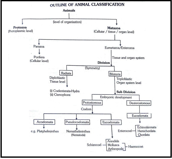 β`color{Brown}"Skeleton"` : The body is supported by a skeleton made up of `color{Violet}"spicules"` (calcerous or siliceous) or `color{Violet}"sponging fibers"`.