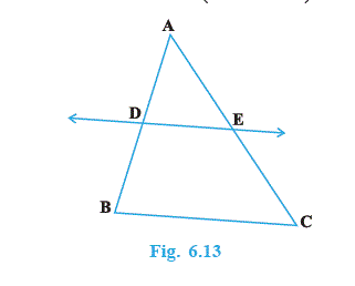 This theorem can be proved by taking a line `DE` such that `(AD)/(DB) = (AE)/(EC)` and assuming that `DE` is not parallel to BC (see Fig. 6.12).