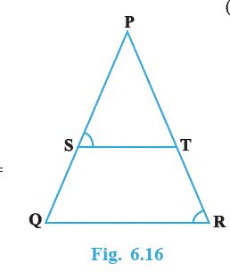 ●`=>color{blue}{"Theorem 6.2 :"` If a line divides any two sides of a triangle in the same ratio, then the line is parallel to the third side.