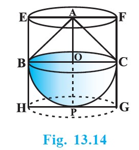 Let BPC be the hemisphere and ABC be the cone standing on the base