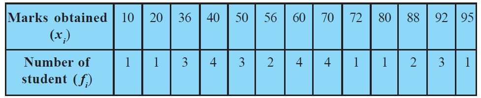class, e.g., 4 students who have obtained 40 marks would be considered in the classinterval