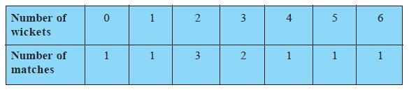 Clearly, 2 is the number of wickets taken by the bowler in the maximum number (i.e., 3) of matches. So, the mode of this data is 2.