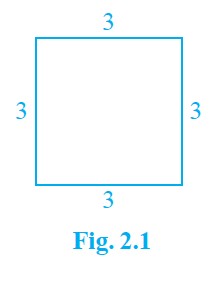 Now, consider a square of side 3 units (see Fig. 2.1). What is its perimeter? You know that the perimeter of a square is the sum of the lengths of its four sides.