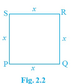 In case the length of each side is x units (see Fig. 2.2), the perimeter is given by` 4x `units. So, as the length of the side varies, the perimeter varies.