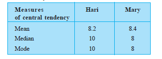 Hari said that since his middle-most score was 10, which was higher than Mary’s middle-most score, that is 8, his performance should be rated better.