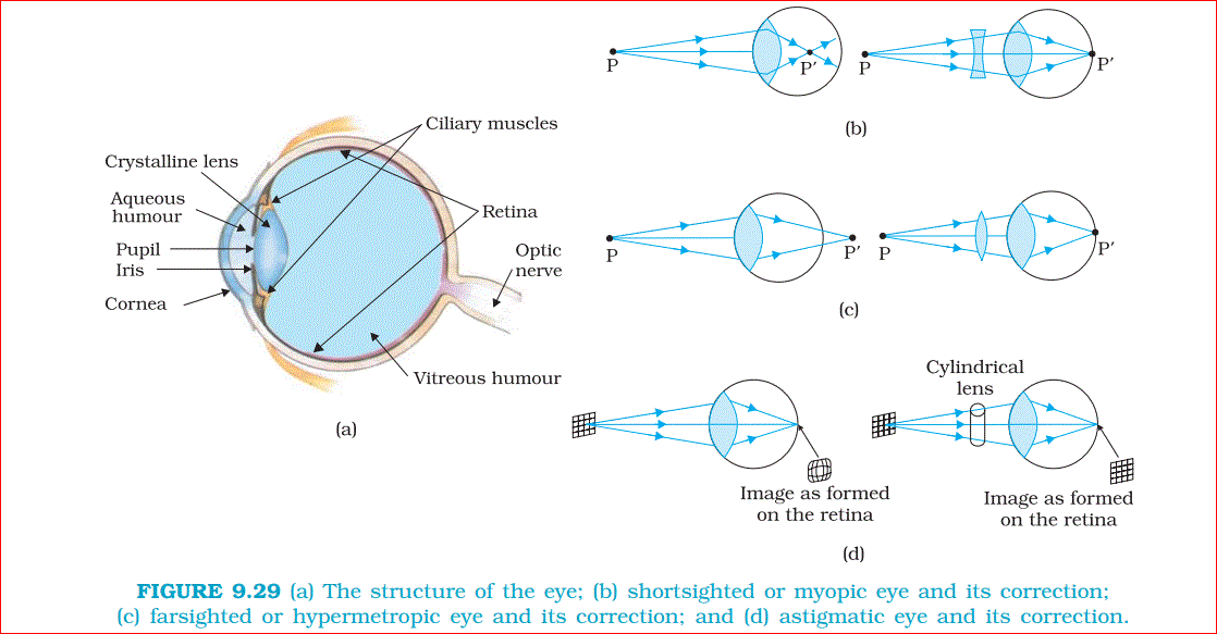 `color{blue} ✍️`In order to understand the formation of rainbows, consider Fig. (9.27(a). Sunlight is first refracted as it enters a raindrop, which causes the different wavelengths (colours) of white light to separate.