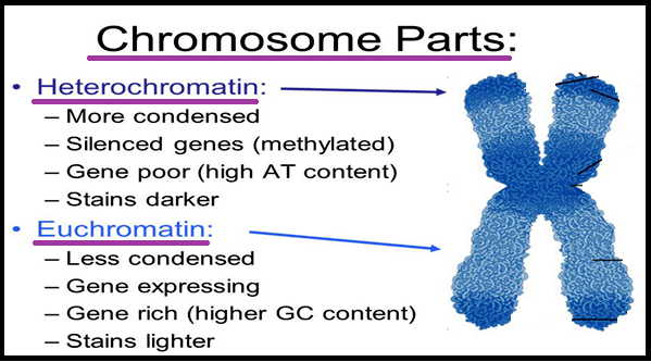 ● The chromatin that is more `color{Violet}"densely packed"` and stains `color{Violet}"dark"` are called as `color{Violet}"Heterochromatin"`.