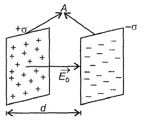 Consider a capacitor with surface charge density cr on its plates. Suppose area of each plate is A and separation between the plates is d.