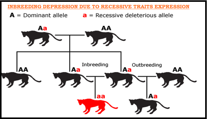 ● Inbreeding exposes `color{Violet}"harmful recessive gene"`s that are `color{Violet}"eliminated by selection"`.
