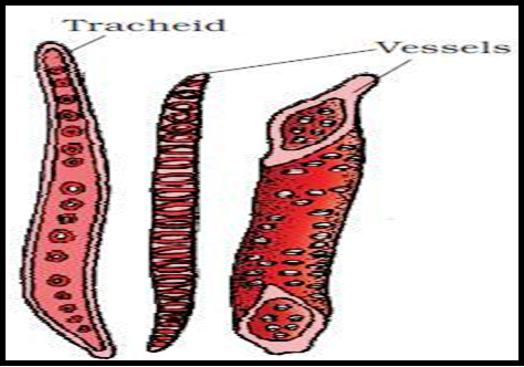 ● In `color{violet}("flowering plants, tracheids")` and `color{violet}("vessels")` are the main `color{violet}("water transporting elements.")`