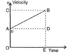 Draw velocity-time graph of uniformly accelerated motion in one dimension. From the velocity time graph of uniform accelerated motion, deduce the equations of motion in distance and time.
