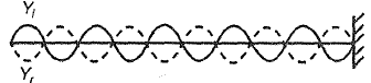 If a wave 'A' is made to hit a rigid support, there will be a reflected wave 'B' from the rigid support. As the two waves are super imposed, there will be a standing wave (as shown) produced. It can be represented by the equation, `y = 2A sin kx` cos wt indicating a position varying amplitude `(2A sin kx)`