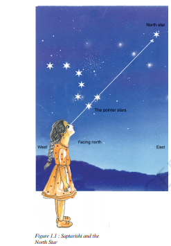 `color{green}(โข)` Look at Figure 1.1. You will notice that, if an imaginary line is drawn joining the pointer stars and extended further, it will point to the Pole Star.