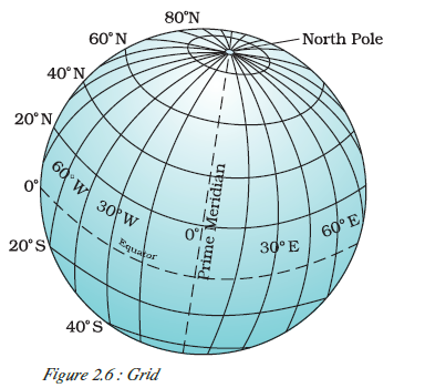 `color{green}(โข)` Now look at the grid of the parallels of latitude and meridians of longitude on the globe (Figure 2.6).
