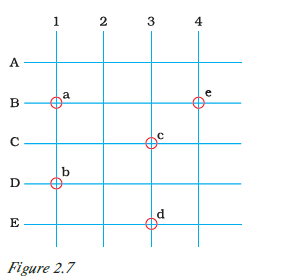 `color{green}(โข)` Label the vertical rows with numbers and horizontal rows with letters, draw some small circles randomly on points where these horizontal and vertical lines intersect each other.