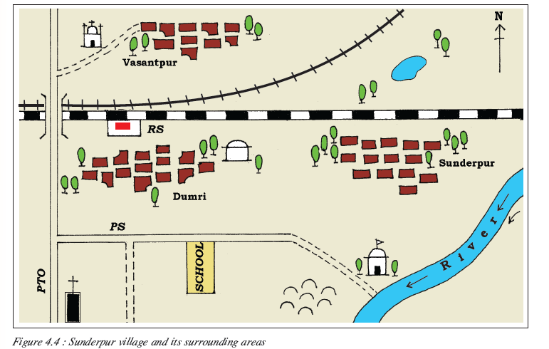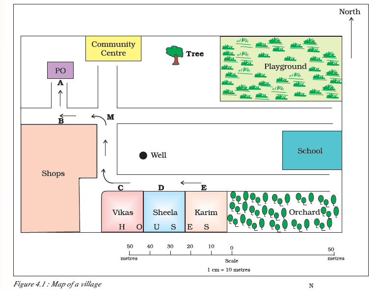 `color{green}(โข)` It is not possible to draw on a map the actual shape and size of different features such as buildings, roads, bridges, trees, railway lines or a well.