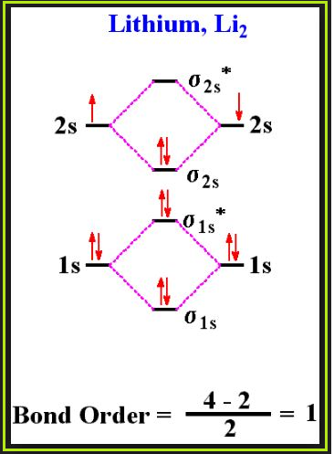 `=>` Bond order `= (N_b - N_a)/2 = (10-6)/2 = 2`