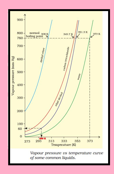 ● Vapour pressure of some common liquids at various temperatures is given in fig.