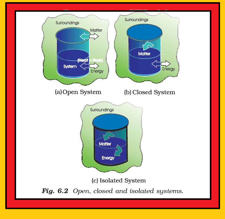 (i) `text(Open System :)` In an open system, there is exchange of energy and matter between system and surroundings [Fig. 6.2 (a)].