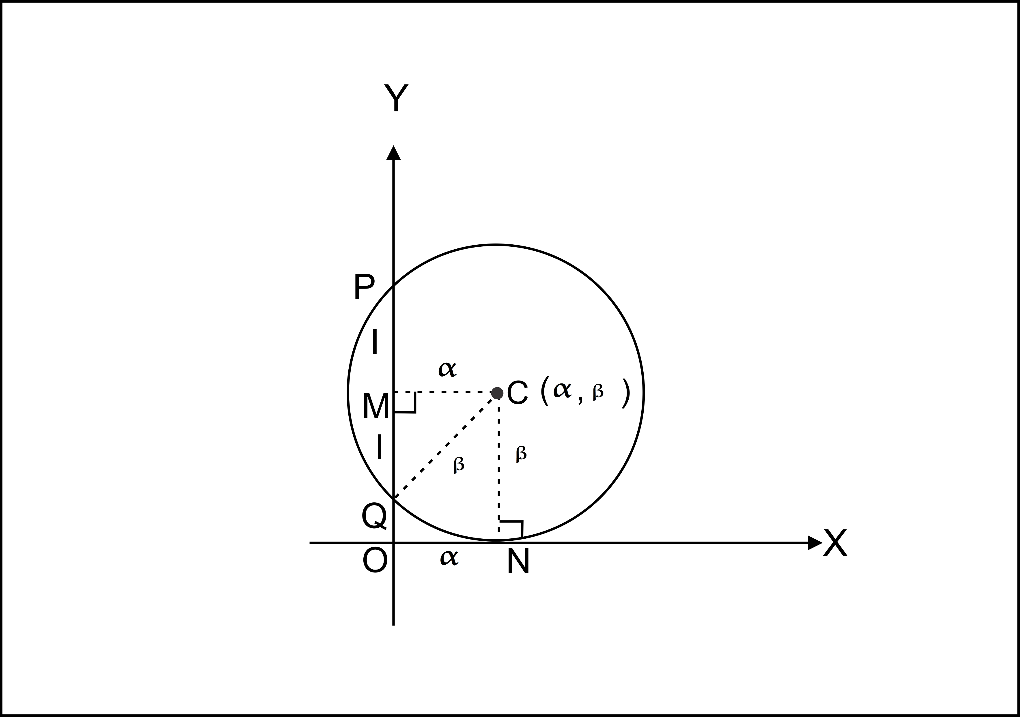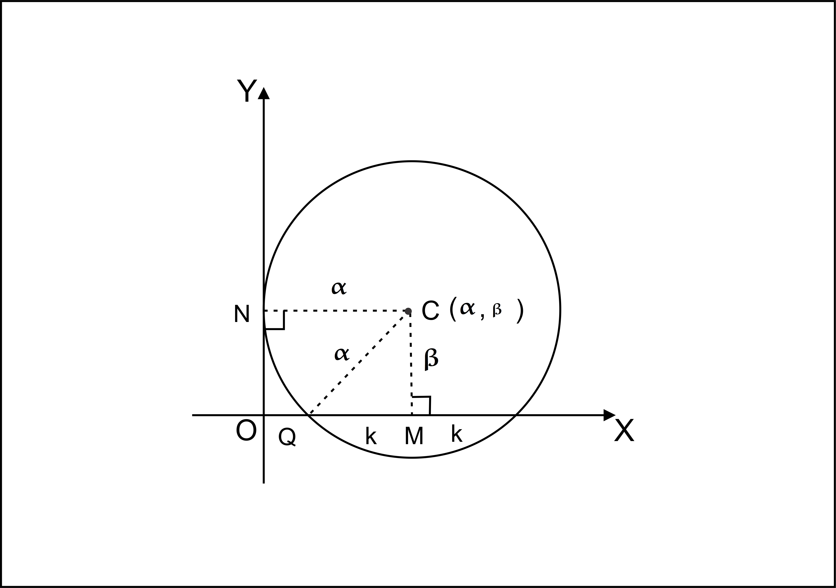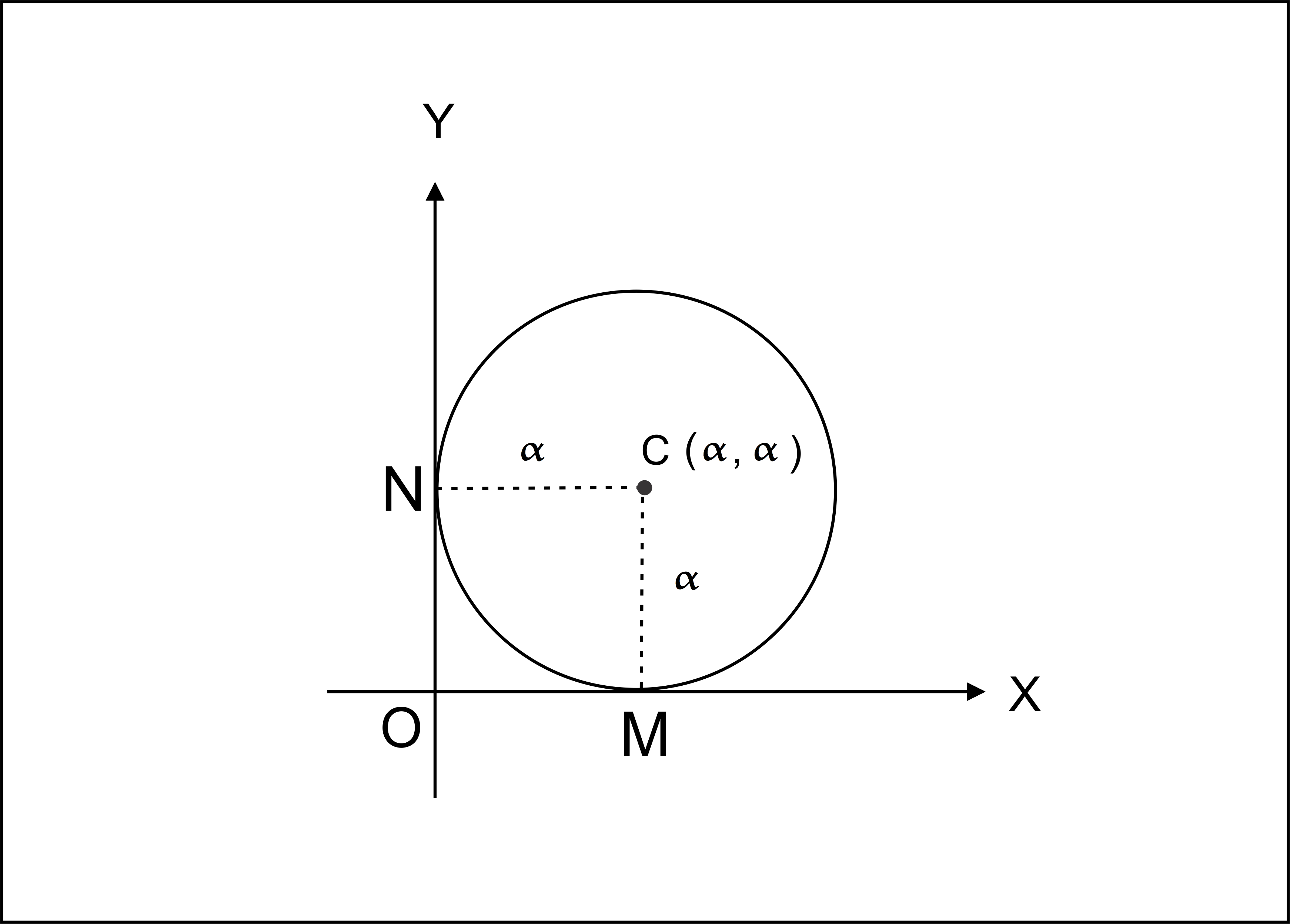 Equation of circle is `(x - alpha) ^2 + (y - alpha)^ 2 = alpha^ 2`