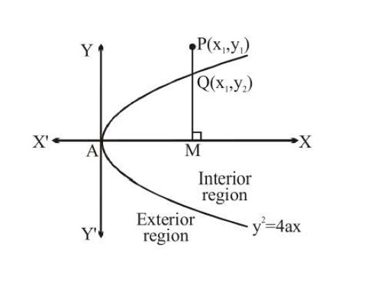 (ii) If `S(x_1, y_1) < 0` then `P(x_1 ,y_1)` lie inside the parabola.