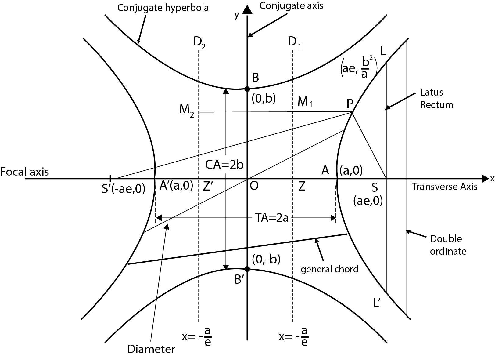 The ftxed point is called the focus, the fixed line is called the directrix and the constant ratio is called the eccentricity of the hyperbola and denoted by `e`.