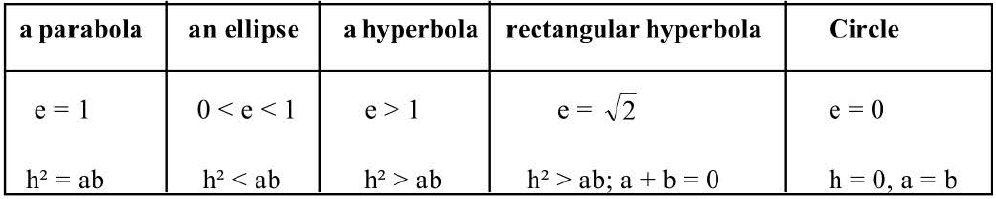 Hence a point, a pair of intersecting straight lines, circle, parabola, ellipse and hyperbola, all are conicsections. All the conic sections are plane or two dimensional curves.