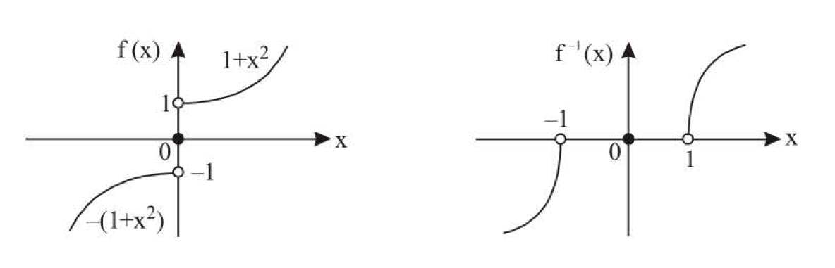 e.g. `f(x) = [tt( (1+x^2, text(if) x ne 0) , ( 0 , text(if) x=0) , (-(1+x^2) ,text(if) x ne 0) )` is discontinuous at `x = 0` but its inverse function