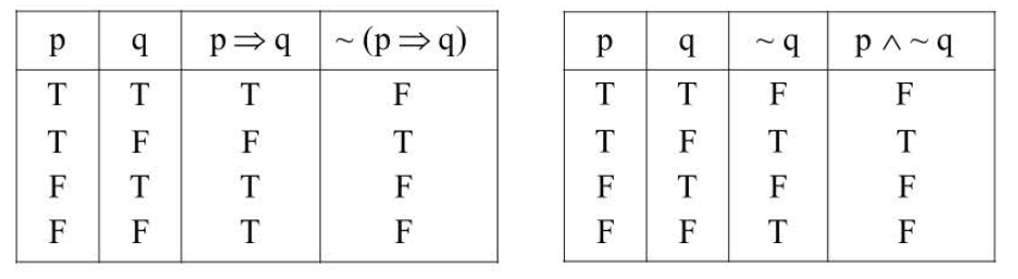 `~ (p => q) = p ∧ ~ q` `[ :. p => q -equiv ~p ∧ q ]`