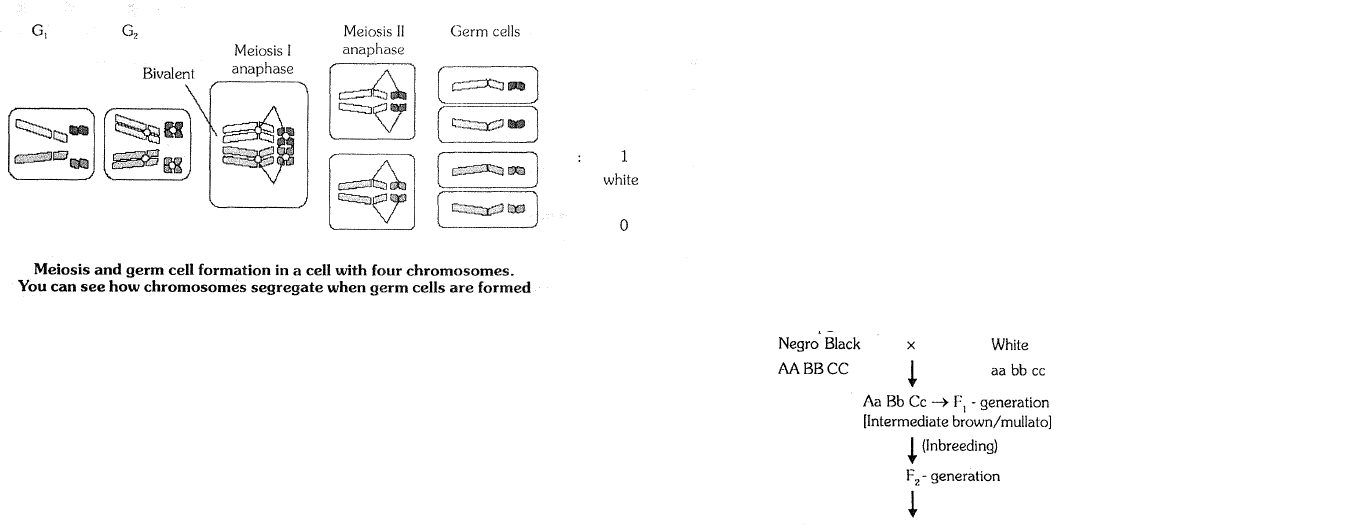 During metaphase of meiosis I, the two chromosome pairs can align at the metaphase plate independentaly of each other. To understand this, compare the chromosomes of four different colour in the left and right columns. In the left column (Possibility I) orange and green is segregating together. But in the right hand column {Possibility II) the orange chromosome is segregating with the red chromosomes.