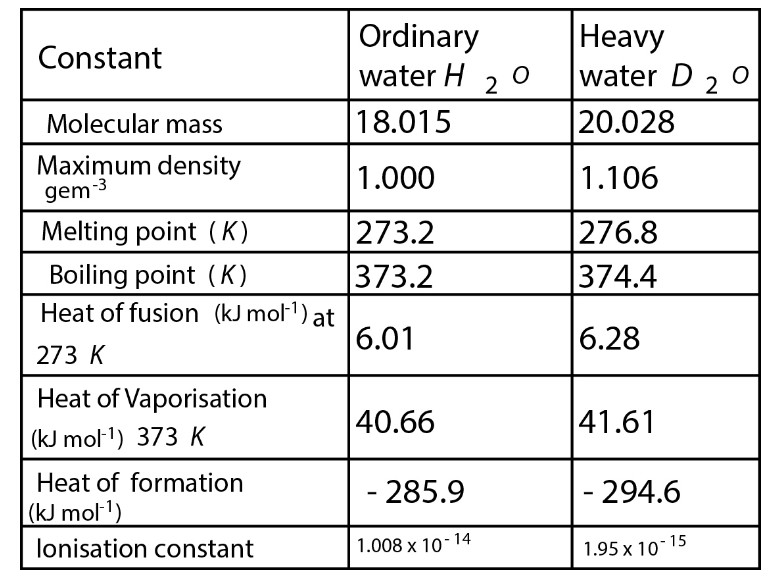 Chemically heavy water is deuterium oxide (`D_2O`). It was discovered by Urey. It has been finding use in nuclear reactors as a moderator because it slows down the fast moving neutrons and therefore, helps in controlling the nuclear fission process.