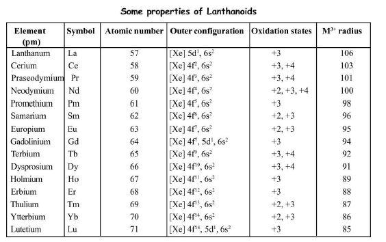 (i) It is to be noted here that filling of `4f` orbitals in the atoms is not regular. A `5d` electron appears in gadolinium (`Z= 64`)with an outer electronic configuration of `4f^7 5d^1 6s^2` (and not `4f^8 6s^2` ). This is because the `4f` and `5d` electrons are at about the same potential energy and that the atoms have a tendency to retain stable half filled configuration.