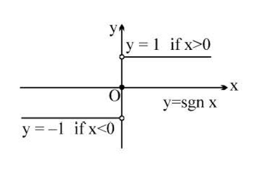 `y = f(x) = {tt((1, text(for), x > 0),(0,text(for),x=0),(-1,text(for),x < 0))`