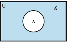 `text(Note:)` If `A` is a subset of the universal set `U,` then its complement `A′` is also a subset of `U.` It is clear from the definition of the complement that for any subset of the universal set `U,` we have `( A′ )′ = A` The complement `A′` of a set `A` can be represented by a Venn diagram as shown in Fig.