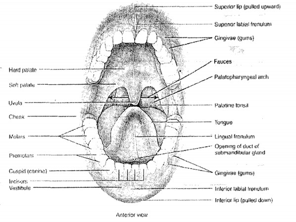 (1) Mouth and Buccopharyngeal Cavity - Mouth is a horizontal transverse slit like aperture which is surrounded by upper and lower lip, a specific muscle is associated with lip called ''orbicularis oris'' muscle.