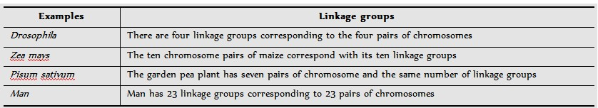 All the genes which are linked with one another, form a linkage group. Since linked genes are present in the same chromosome, the number of linkage group in an animal or plant is equal to the haploid number of chromosomes present in its cells. This hypothesis was given by Sutton and was proved by experiments on Drosophila by T.H. Morgan.