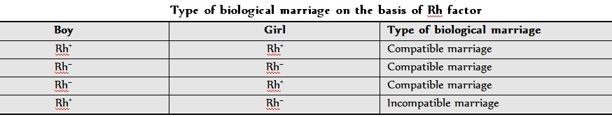 (3) Erythroblastosis foetalis : This disease is related to the birth of a child related with Rh factor. It causes the death of the foetus within the womb or just after birth. It was studies by Levine together with Landsteiner and Wiener. The father of Rh affected foetus is Rh+ and the mother is Rh–. The child inherits the Rh+ trait from the father. A few Rh+ red blood corpuscles of foetus in the womb enter in the blood of the mother where they develop Rh antibodies. As mother’s blood is Rh– i.e. devoid of Rh antigen, it causes no harm to her. These Rh antibodies alongwith the mother’s blood on reaching the foetal circulation cause clamping of foetal RBCs or agglutination reaction. The first child is some how born normal because by that time the number of antibodies in mother’s blood remain lesser but they increase with successive pregnancies. Thus the foetus following the first child dies either within the womb or just after its birth. This condition is known as erythroblastosis foetalis. So a marriage between Rh+ boy and Rh– girl is considered biologically incompatible.