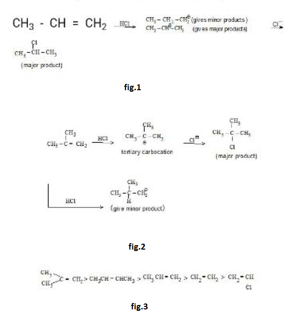`text(Step)` `(i)` the first step involves the addition of `HA` leading to the formation of carbocation.