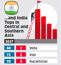 i. India continued to rise in the Global Innovation Index (GII) rankings for the second year in succession, after four consecutive years of decline. In 2017 rankings released in Geneva (Switzerland), India improved its position from 66 to 60.