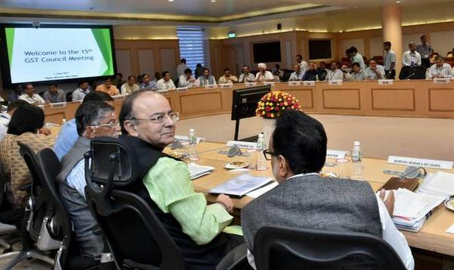 ii. The GST Council last month fitted over 1,200 goods and 500 services in the tax brackets of 5, 12, 18 and 28 per cent. Union Finance Minister Arun Jaitley has chaired the 15th meeting of the GST Council, which is scheduled to decide on the tax rate of six items, including gold, textiles and footwear.