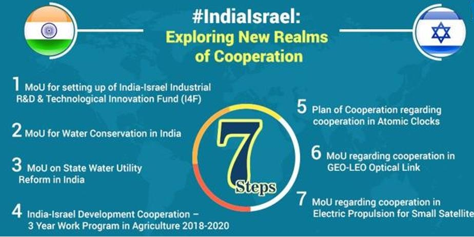 i. A total of seven agreements were signed between India and Israel in sectors ranging from agriculture to water conservation and space as they sought to deepen ties beyond high-priced defence deals.